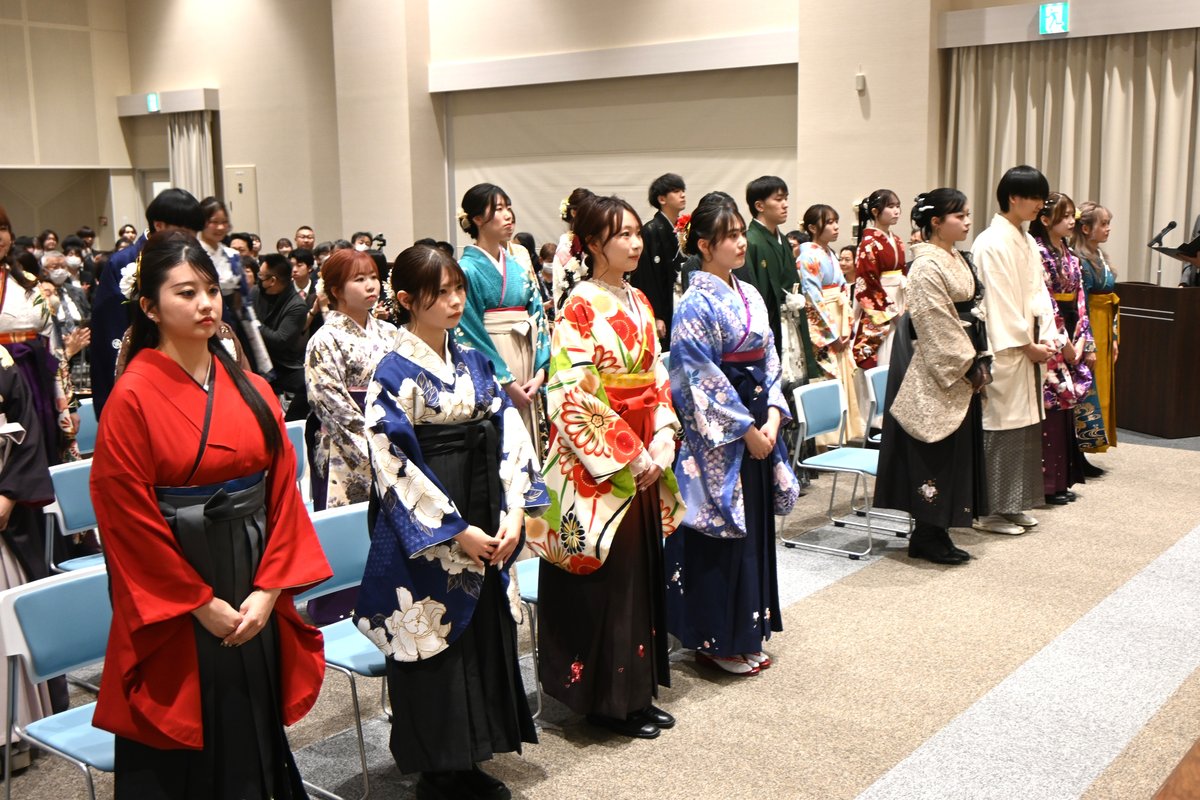 [写真/晴れ着姿で式に参列する卒業生ら(3日、釧路労災看護専門学校)]