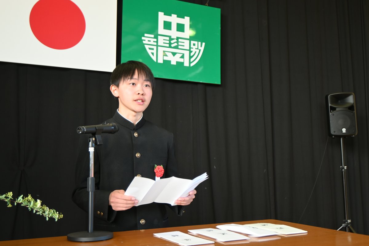[写真/中学校としては最後の答辞を述べる卒業生(13日、釧路市立音別中学校)]