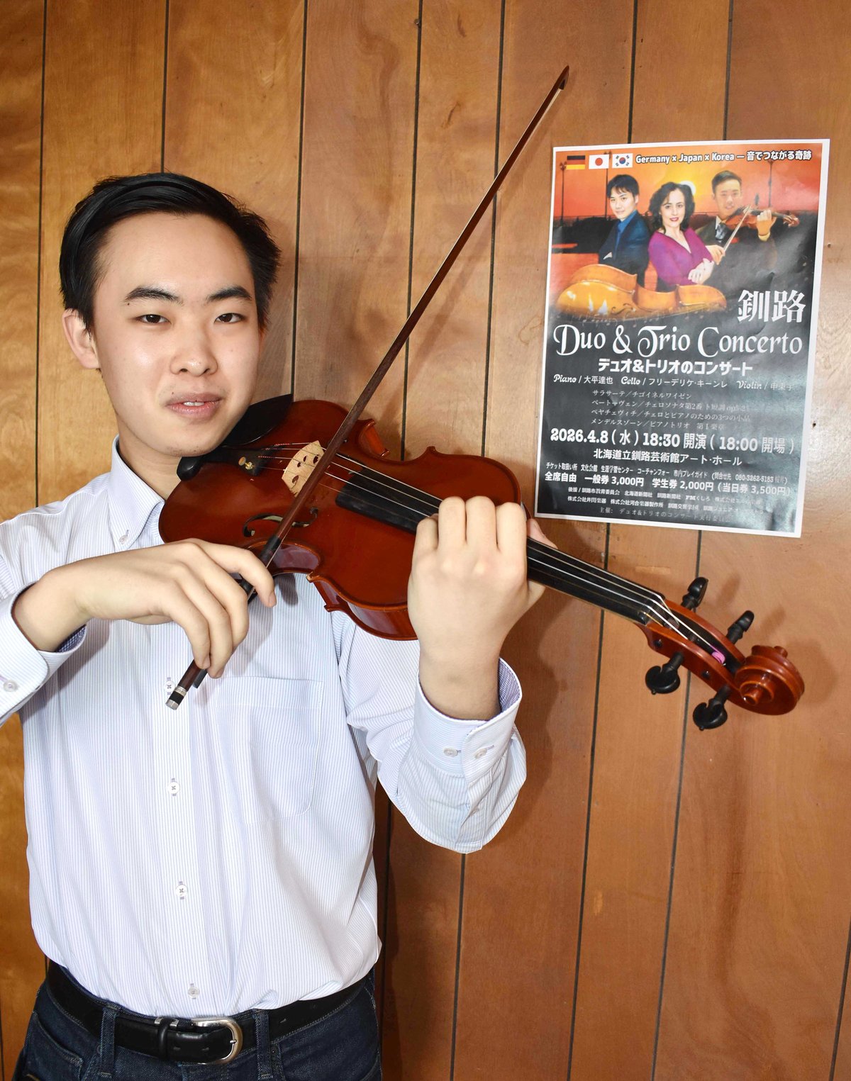 バイオリン、ピアノ、チェロのトリオ、デュオ演奏聴いて 来月8日コンサート【釧路市】(2026-03-24)