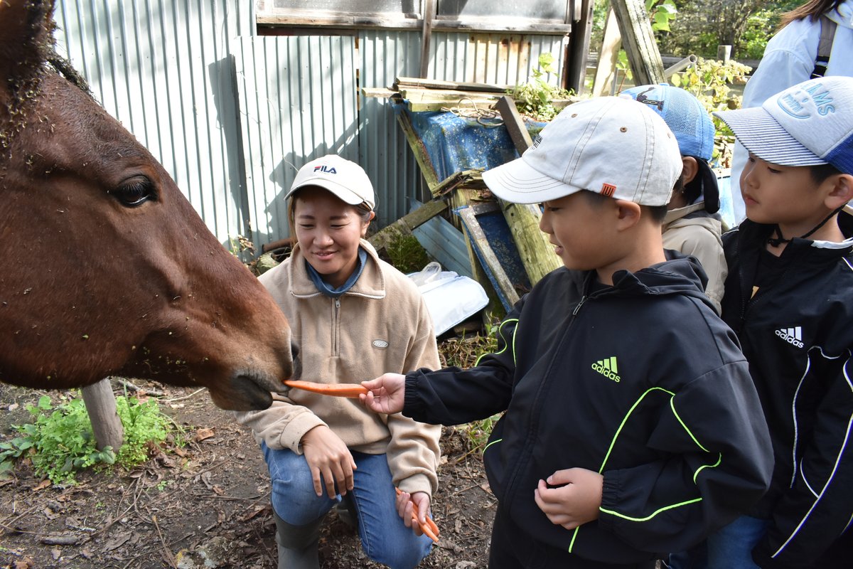 [写真/ニンジンを馬にお裾分け(2025年10月)]