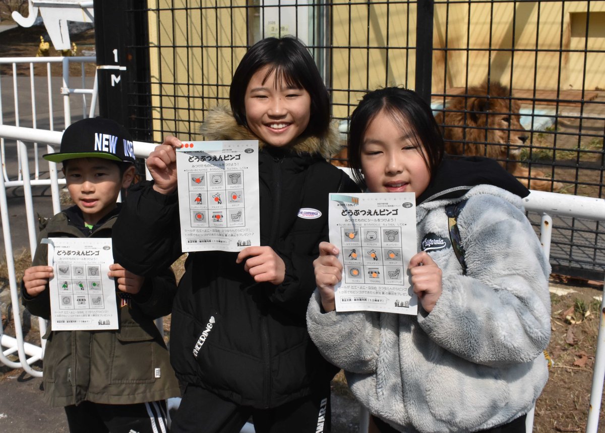 [写真/どうぶつえんビンゴを楽しむ来園者]