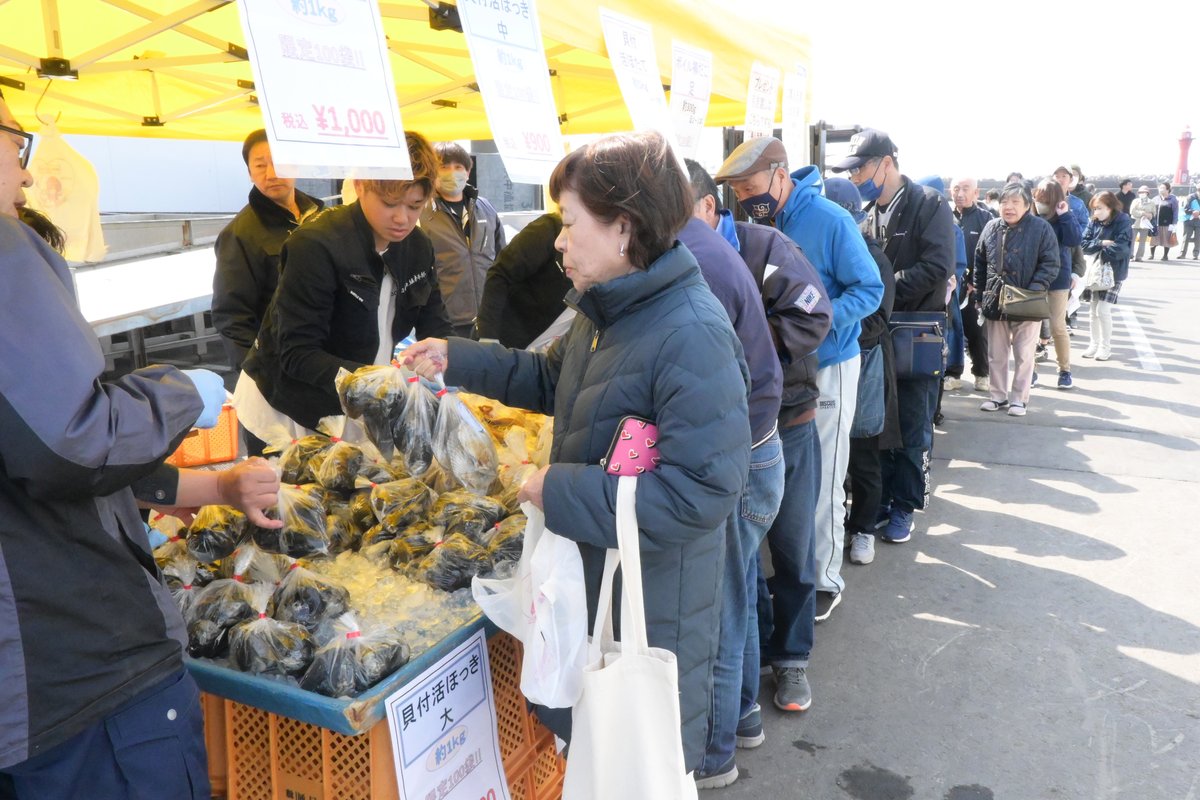 [写真/地元で捕れた新鮮な魚介を求め、列をつくる買い物客]