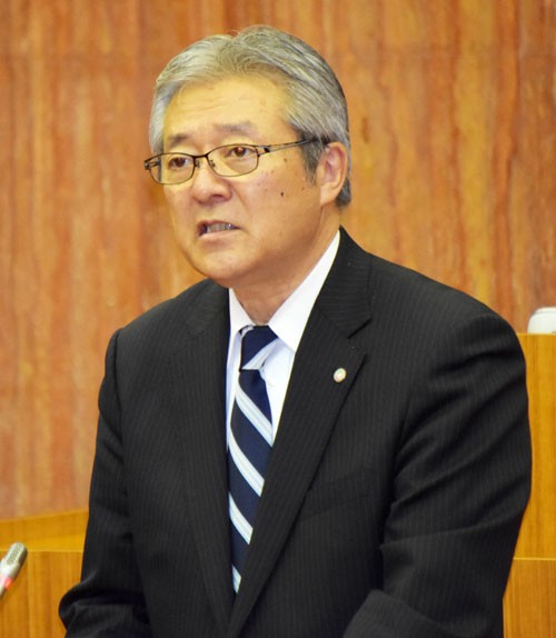 [写真/執行方針を述べる西村町長 ]