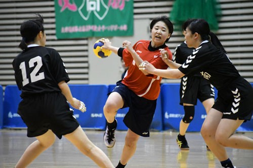 [写真/ハンドボール女子で8年ぶりの王座奪、葬儀を果たした釧商業。身長152㌢の浅見が機敏な動きで敵陣を席巻 ]