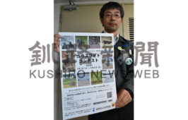 [写真/道内初のカラスフォトコンテスト開催をアピールする貞國学芸員 ]