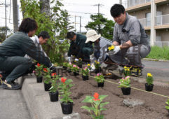 ベコニアなど400株 植樹帯に植え込む 渡辺建設工業 (2019-06-07)