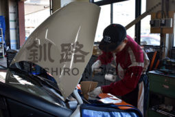 [写真/利用者の自動車を点検する従業員(釧路トヨタ釧路店) ]